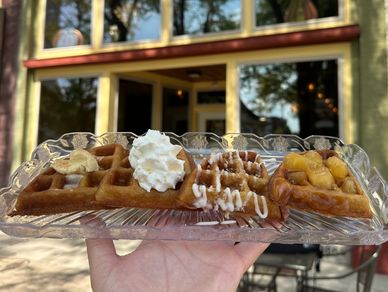 You can complete your coffee with our grab-and-go items, including Belgian waffles, Overnight Oats, Waffles on a Stick, Cinnamon rolls, or a Bagel. We look forward to serving you!